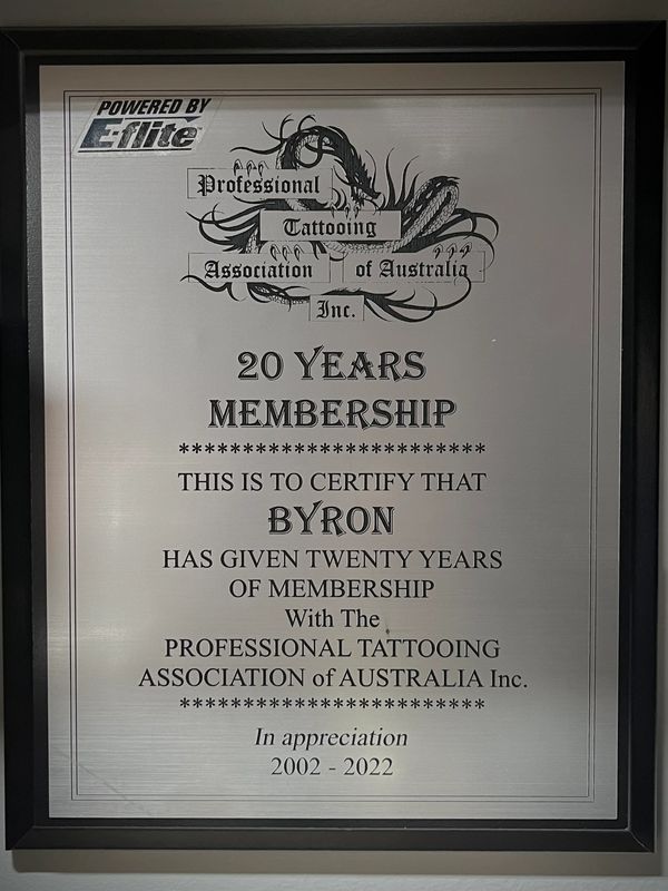 Proud 20+ years of membership of the P.T.A.A (Tattoo)